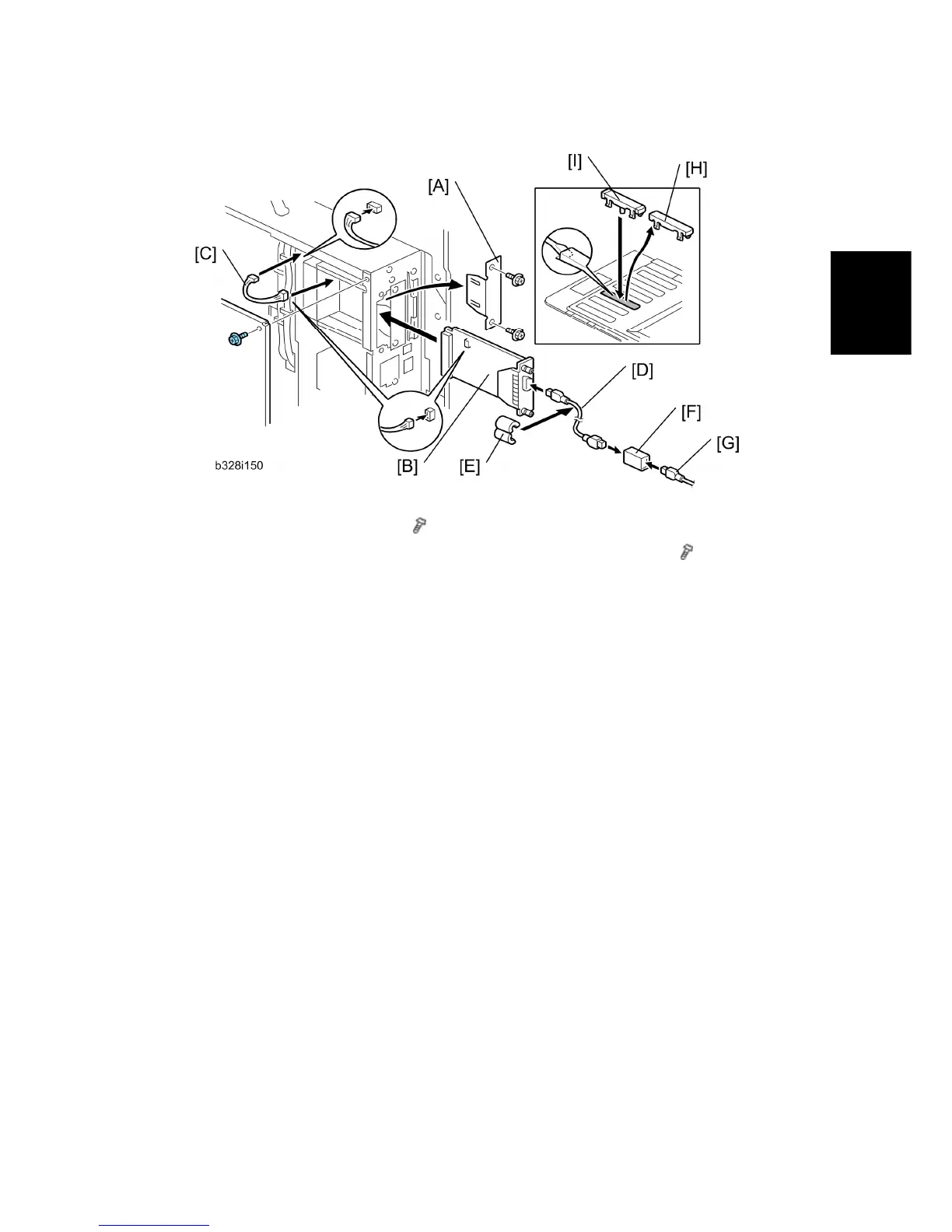 3. Install the Copier Connection Kit Board B328 [B] in Slot B and fasten it (