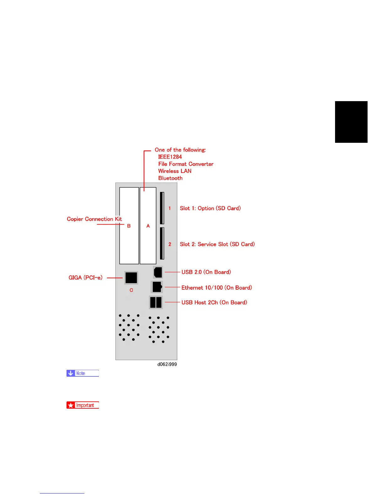 board or SC card must be inserted into its assigned slot. The slot assignment of each item