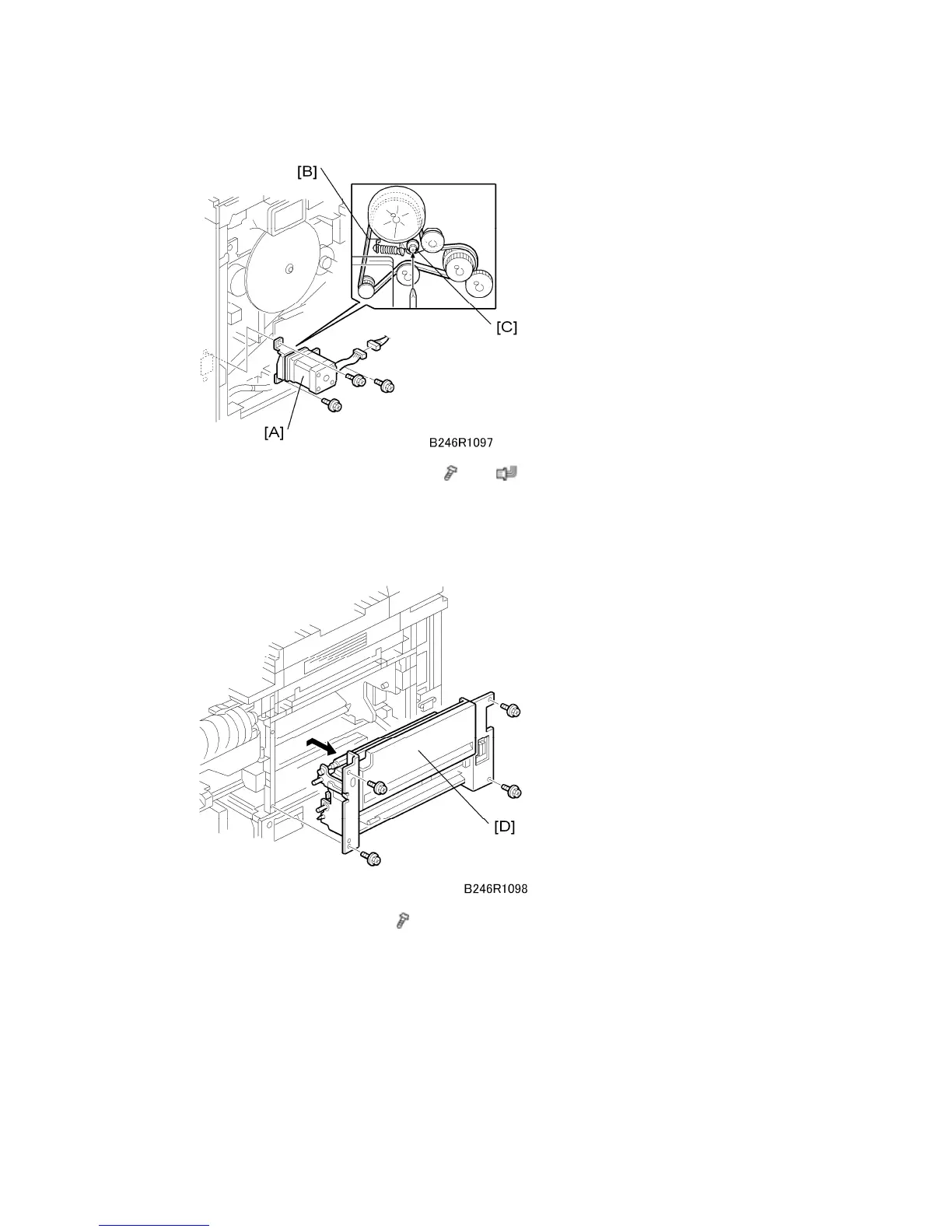 8. Remove the by-pass feed motor [A] (
