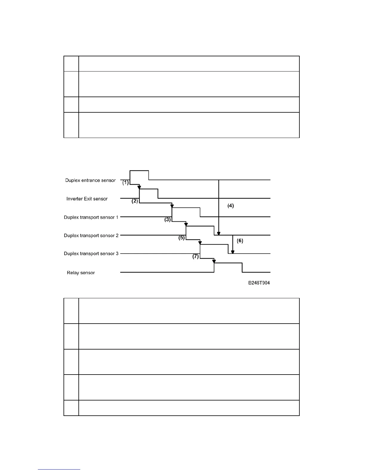 (5): Duplex transport sensor 2 ON > Duplex transport sensor 3 does not switch ON at