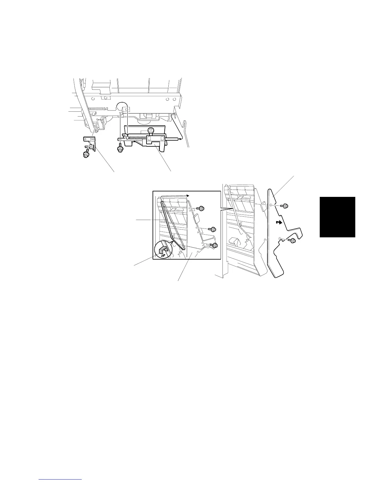5. Remove the front guide [C] ( x 1, spring x 1).