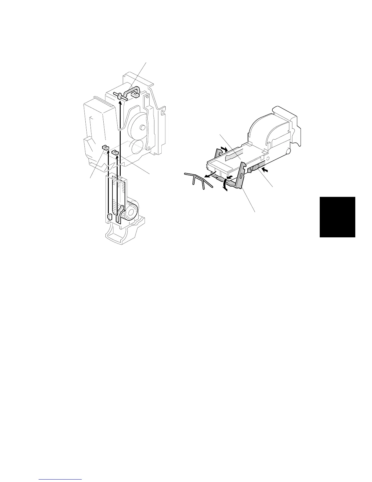 operator can remove the jammed staples from the clinch area by pressing in the
