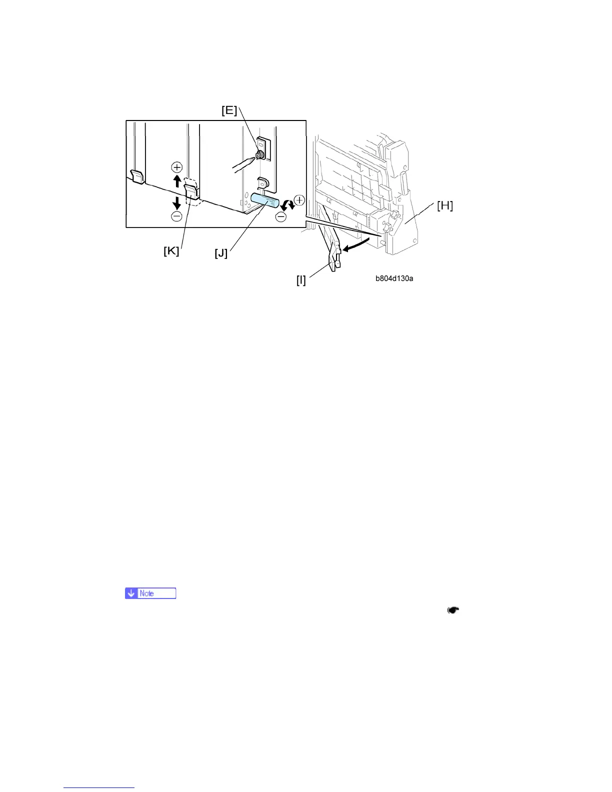 17. Turn the adjustment screw [J] to correct the amount of skew you measured from the test