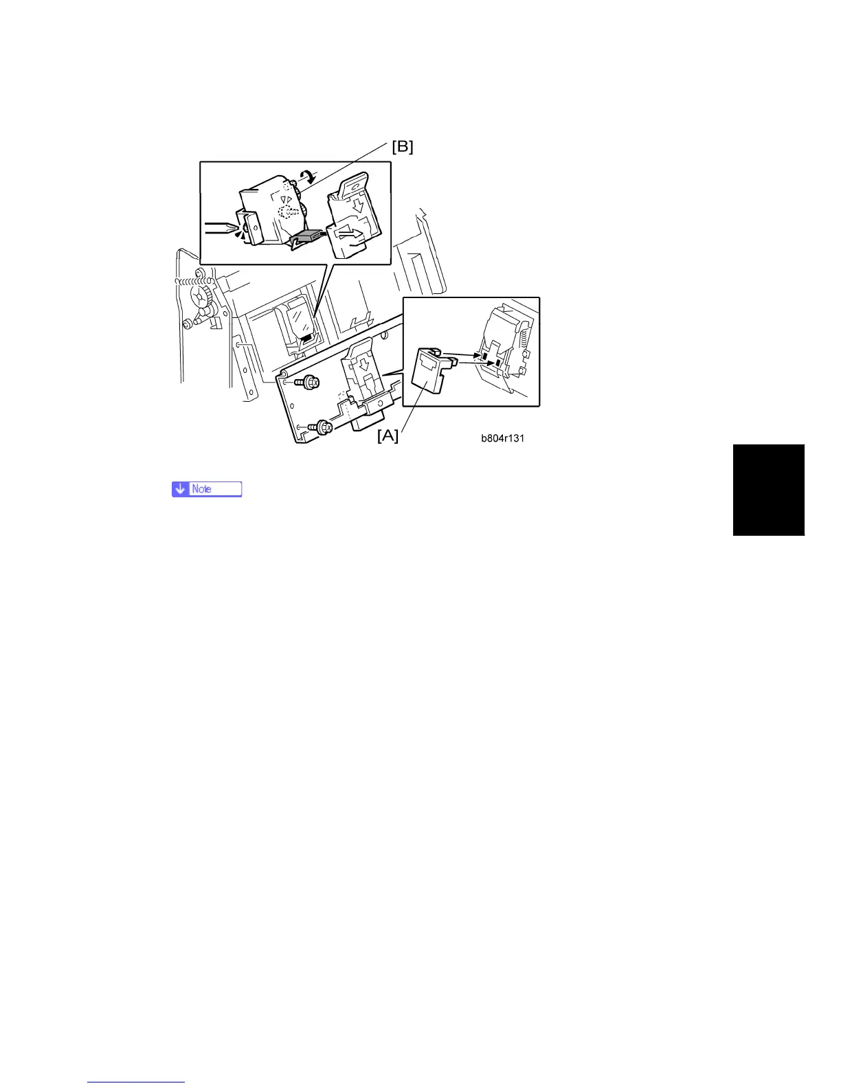 4. Tighten the screws to attach to the booklet stapler motor.