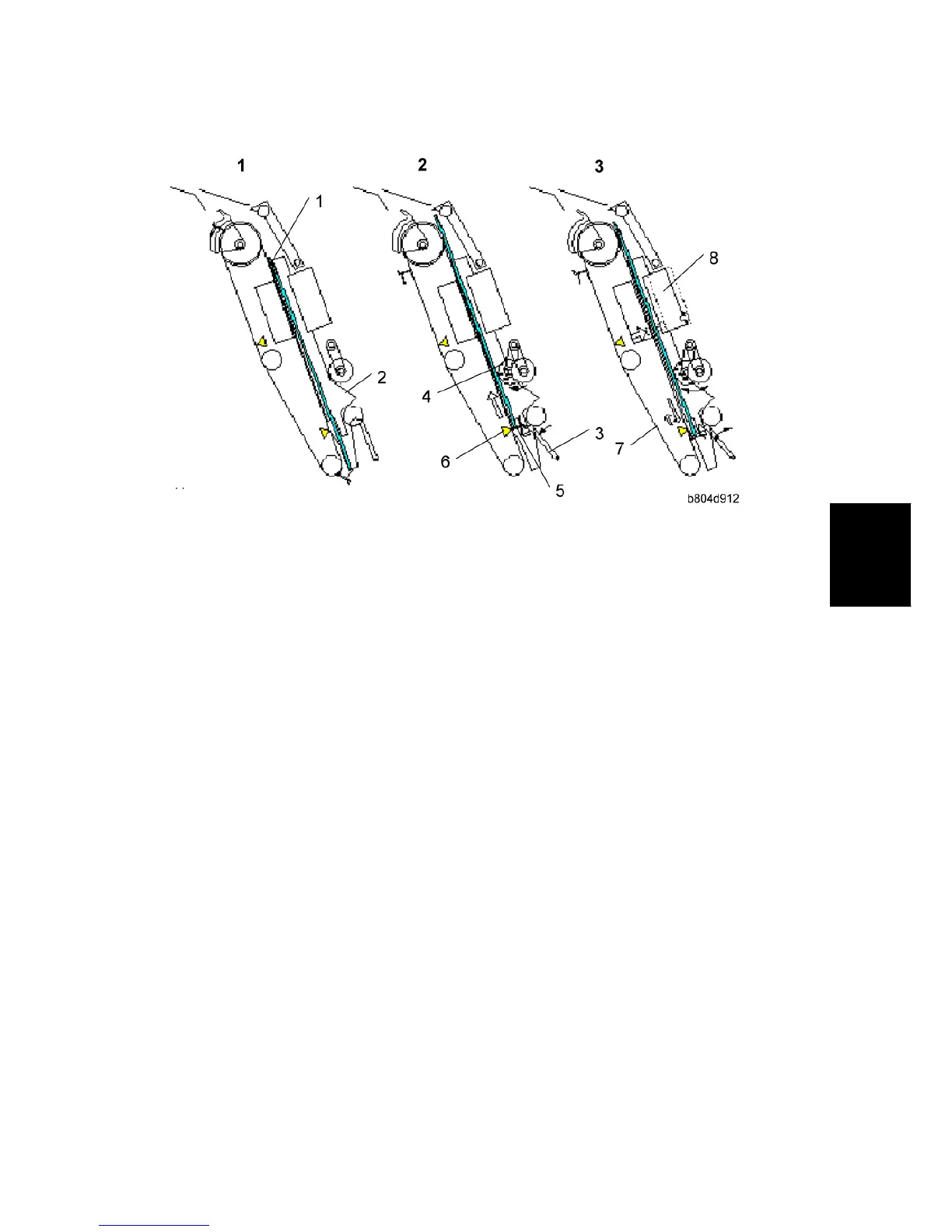 feed out belt switches on and the pawl [5] on the feed out belt catches the bottom of the