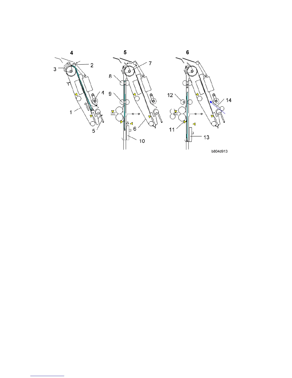 stack. The stack junction gate [3] (normally open) closes. The pressure roller [4] and
