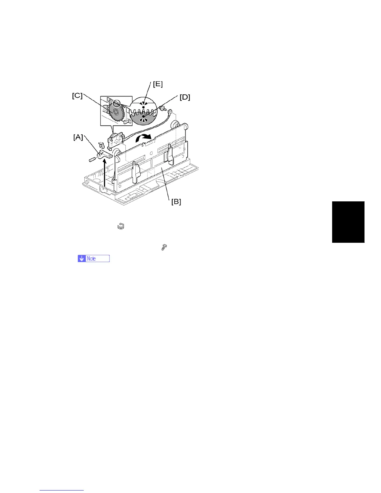 so that the hole in the gear [D] aligns with the peg [E] on the sliding gear.