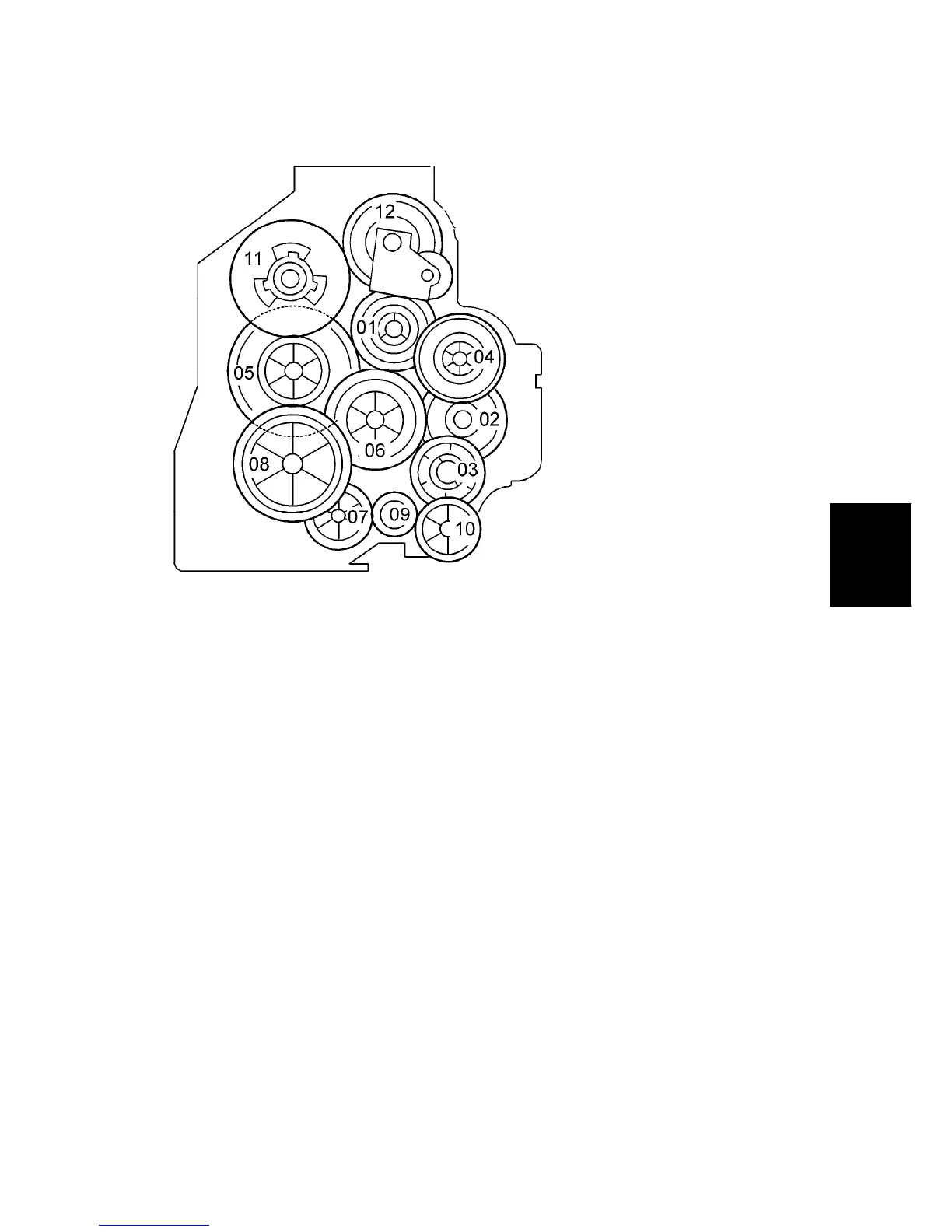 The gears are numbered 1 to 12 in the order in which they are to be installed in the gearbox.