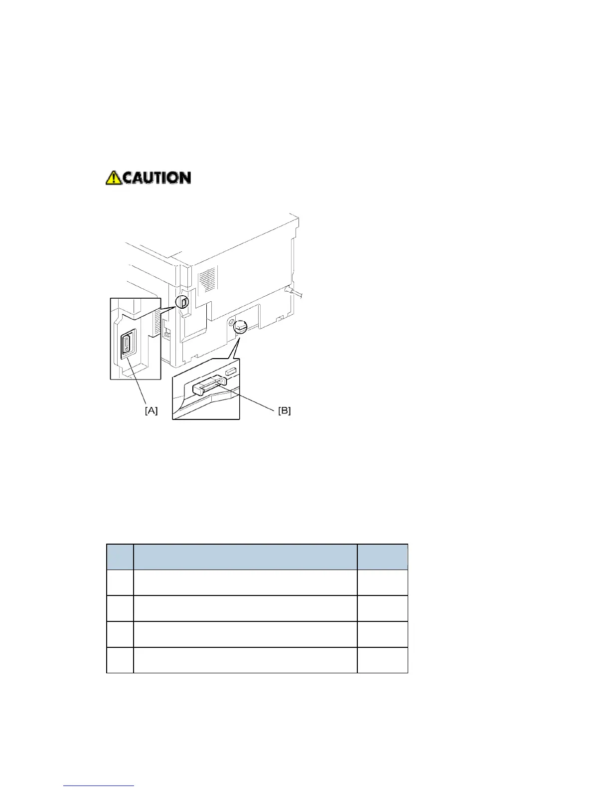 [B]: Socket for paper tray unit (Rated voltage output max. DC24 V)