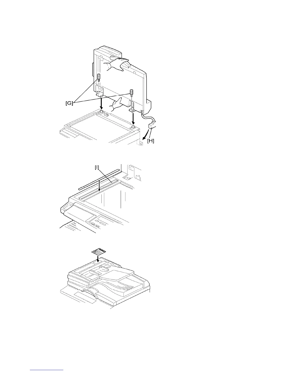 7. Secure the ADF unit with the fixing screws [G].
