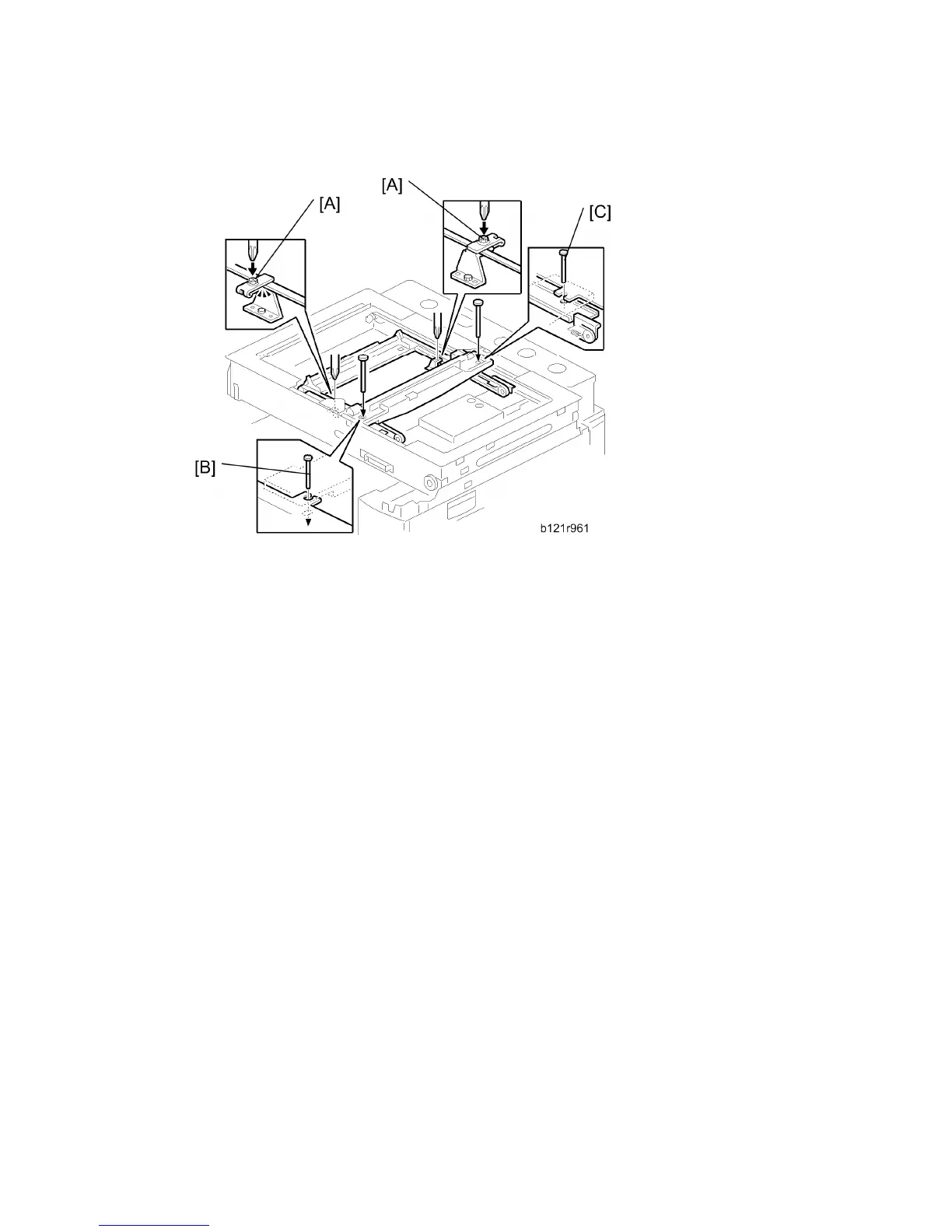 13. Insert the positioning tools [B] [C] through the holes and marks.