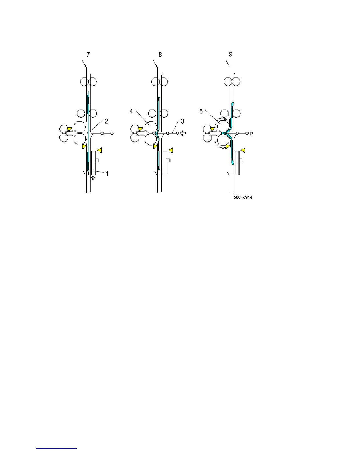 With the fold plate pushing the stack into nip of the fold rollers [5], the fold rollers begin to rotate