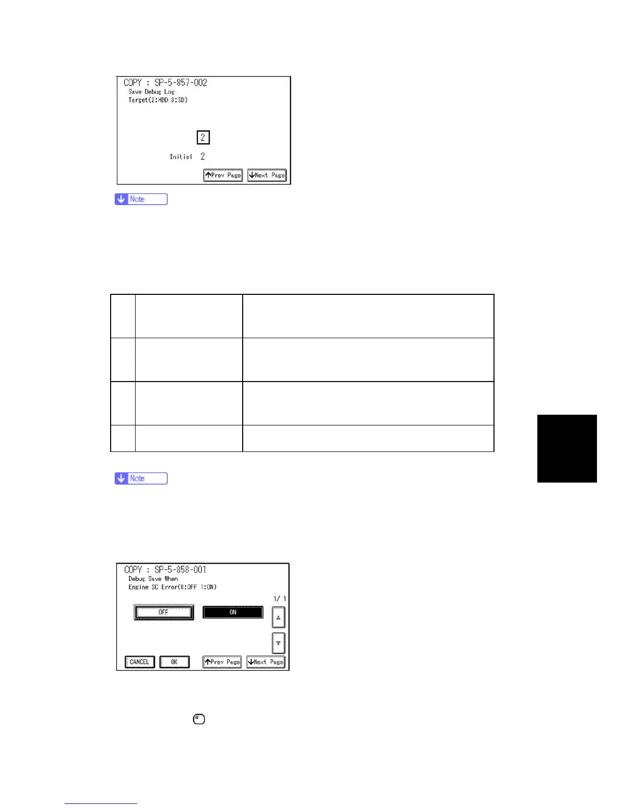 5. Now touch "5858" and specify the events that you want to record in the debug log. SP5858