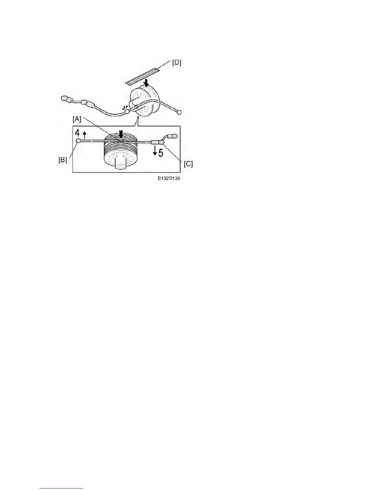 4. Attach tape [D] across the pulley to temporarily hold the wires in place.
