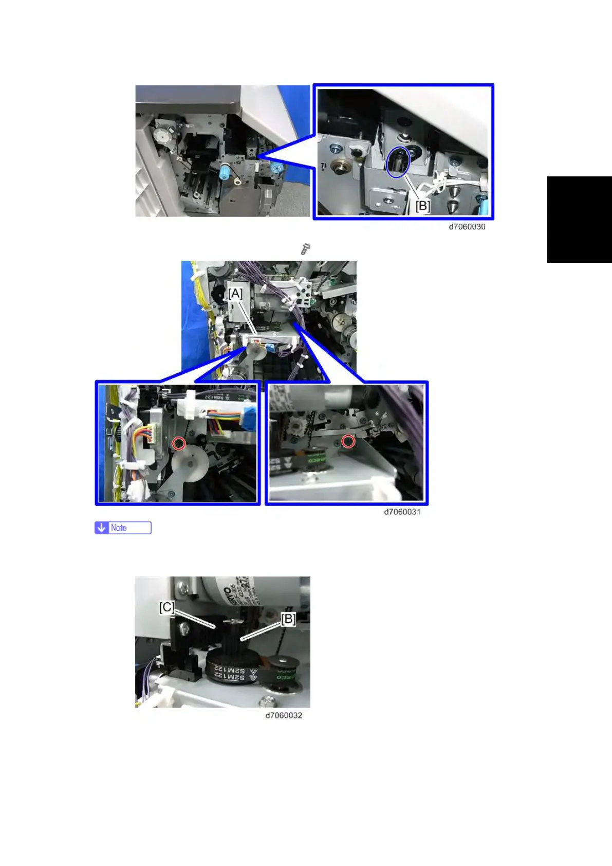 § Engage the gear [B] of the punch stepping motor unit with the rack [C] of the punch
