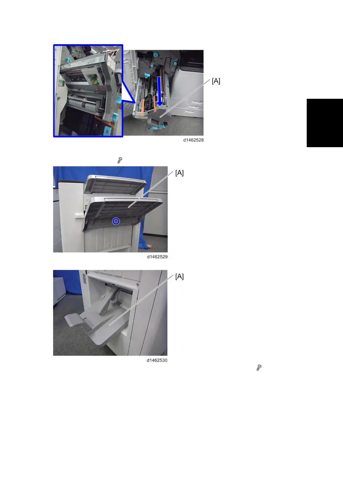 6. Attach the booklet tray [A] (SR3150 only).
