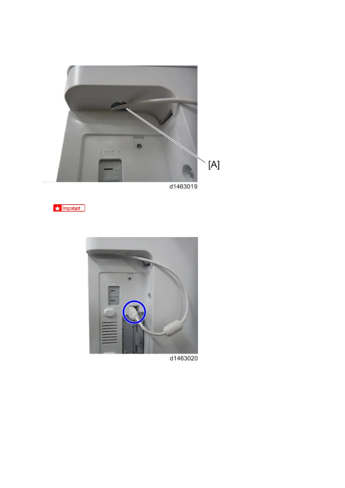 11. Remove the cut-out in the cover and pass the USB Cable through the hole [A].