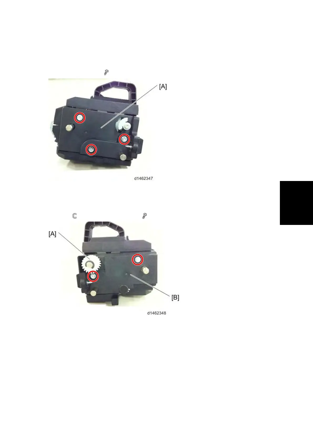 2. Gear [A] ( ×1), Fusing rear cover [B] ( ×2)