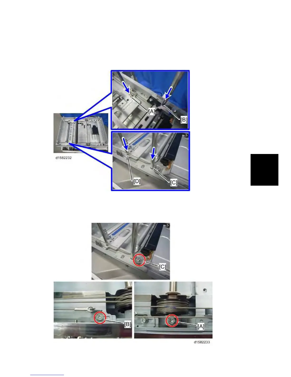 5. Install the scanner wire clamp [C].