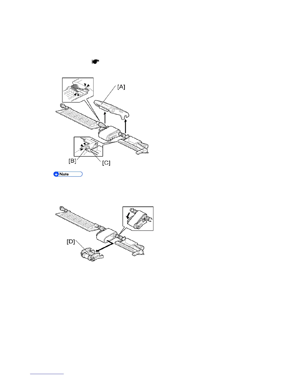 When reassembling the feed belt cover, make sure that the projection [B] of the feed