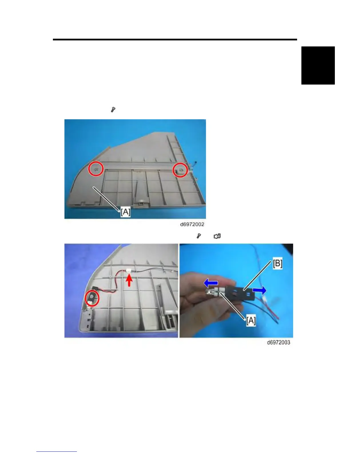 2. Pull out the plastic board [B] from the LED lamp [A] ( x 1, x 1).