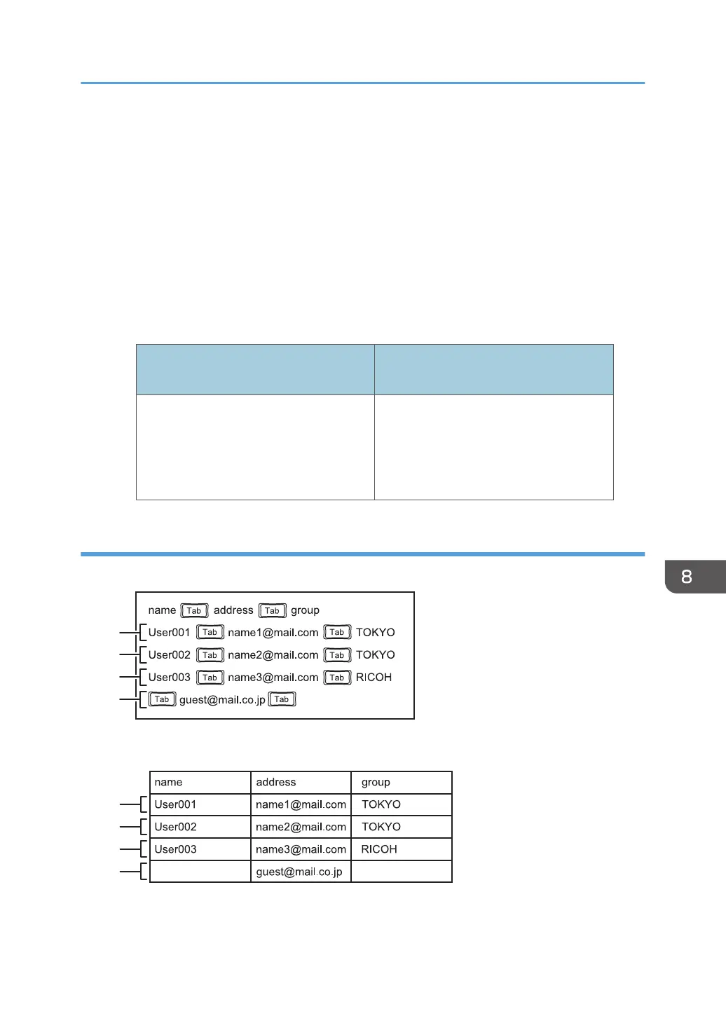 Enter the group name of the e-mail address. When you enter a group name, you can sort or filter the