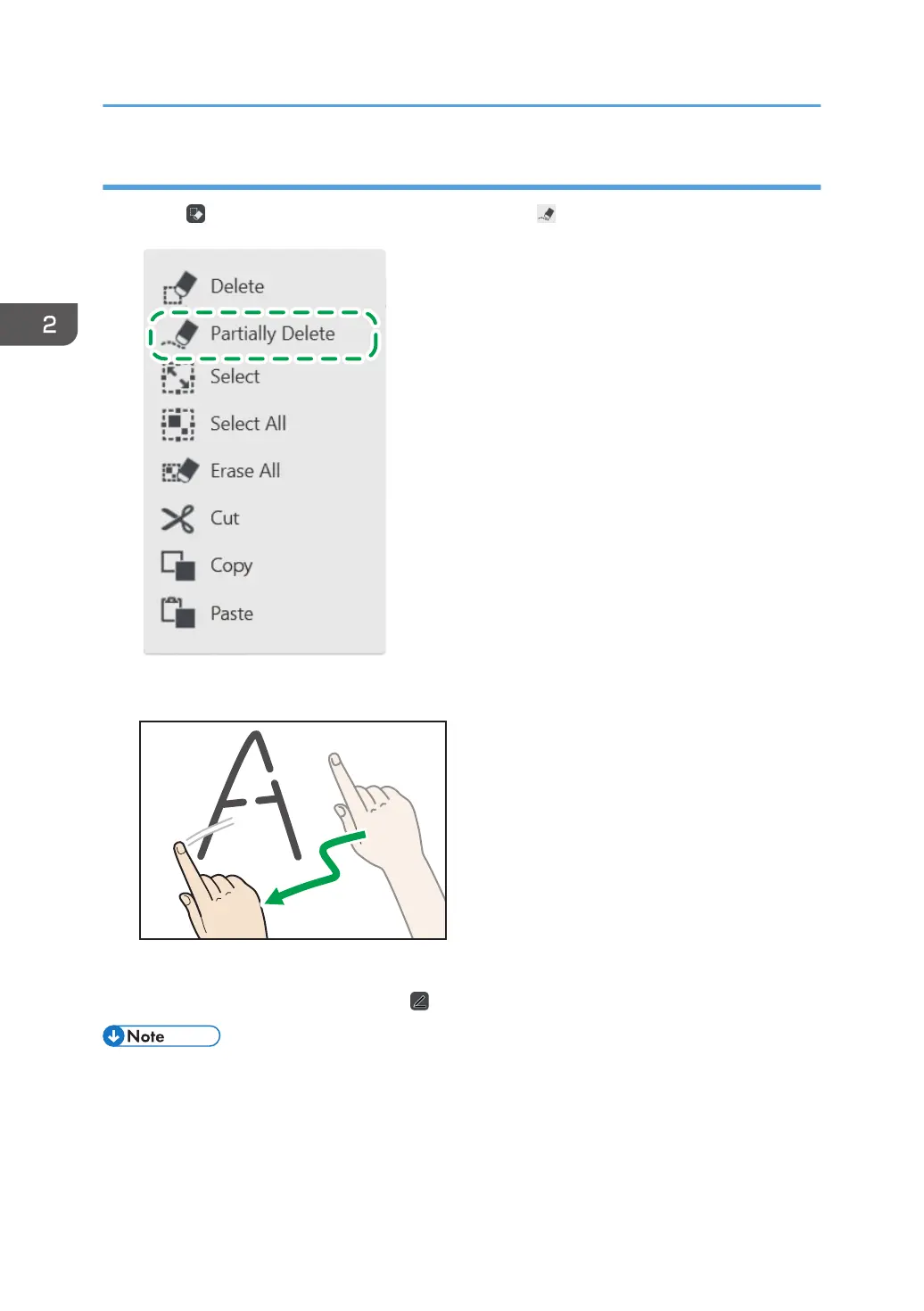 1. Touch , the Select and Delete icon, and then touch , the Partially Delete icon.