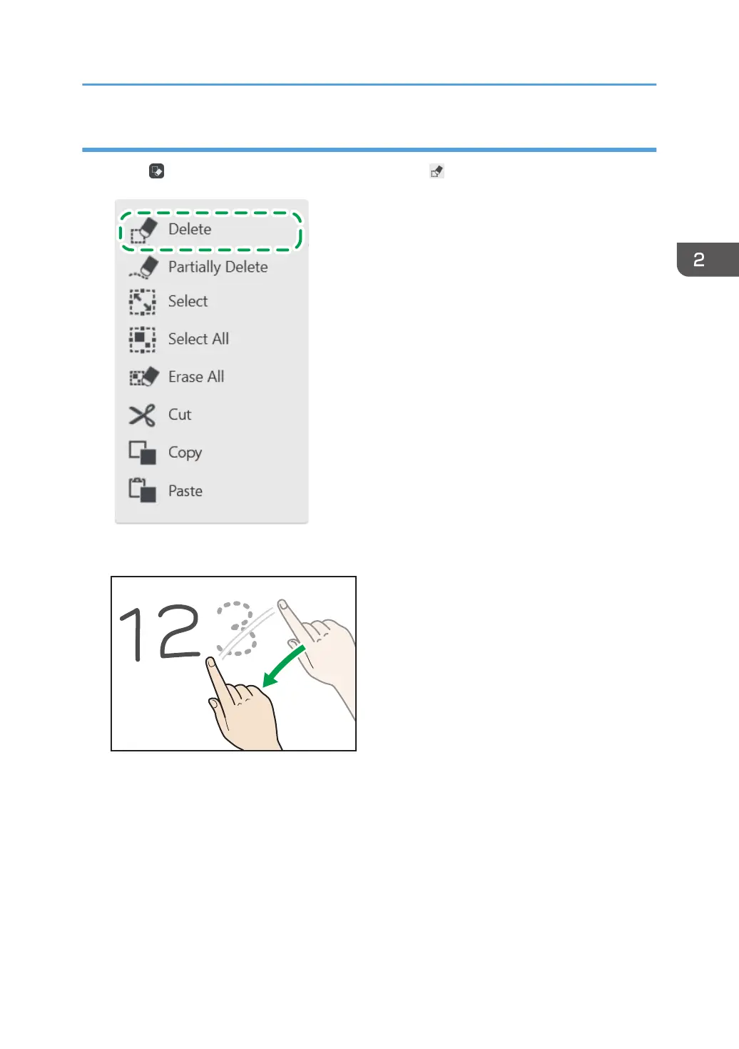 1. Touch , the Select and Delete icon, and then touch , the Eraser icon.
