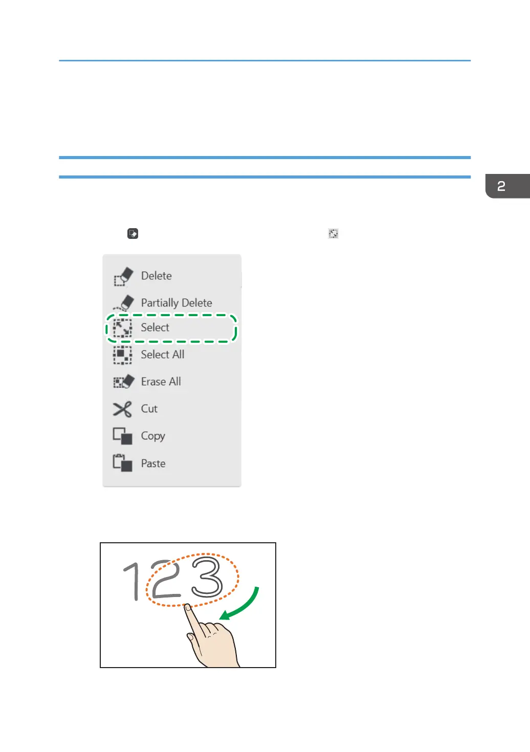 1. Touch , the Select and Delete icon, and then touch , the Select icon.