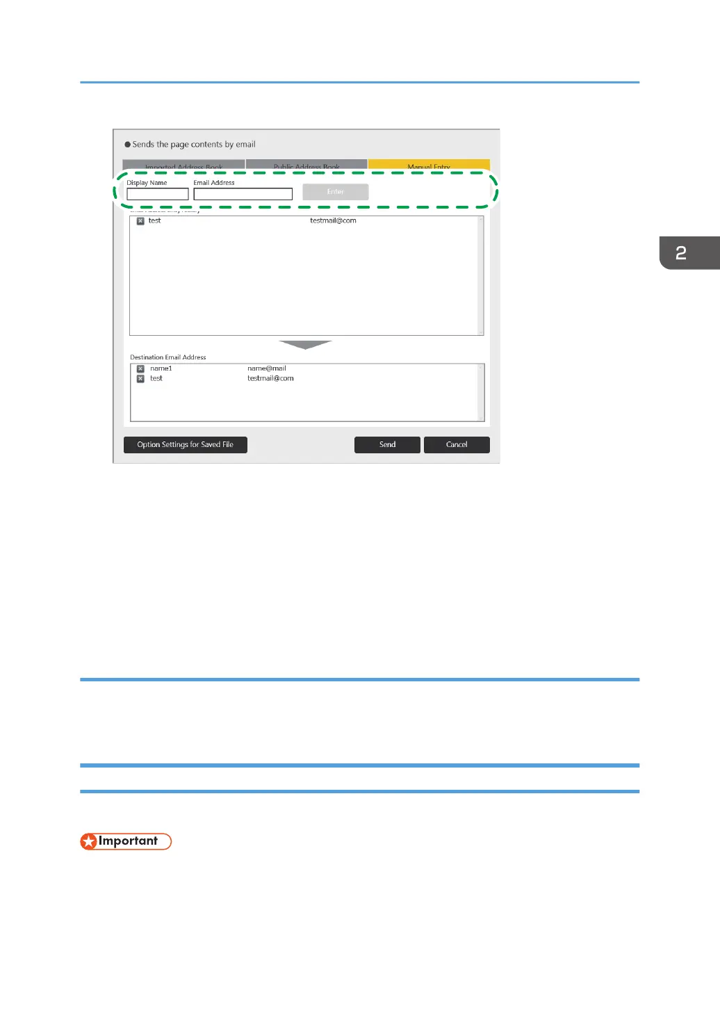 1. Touch the e-mail address of the destination in the "Email Address Entry History" list.