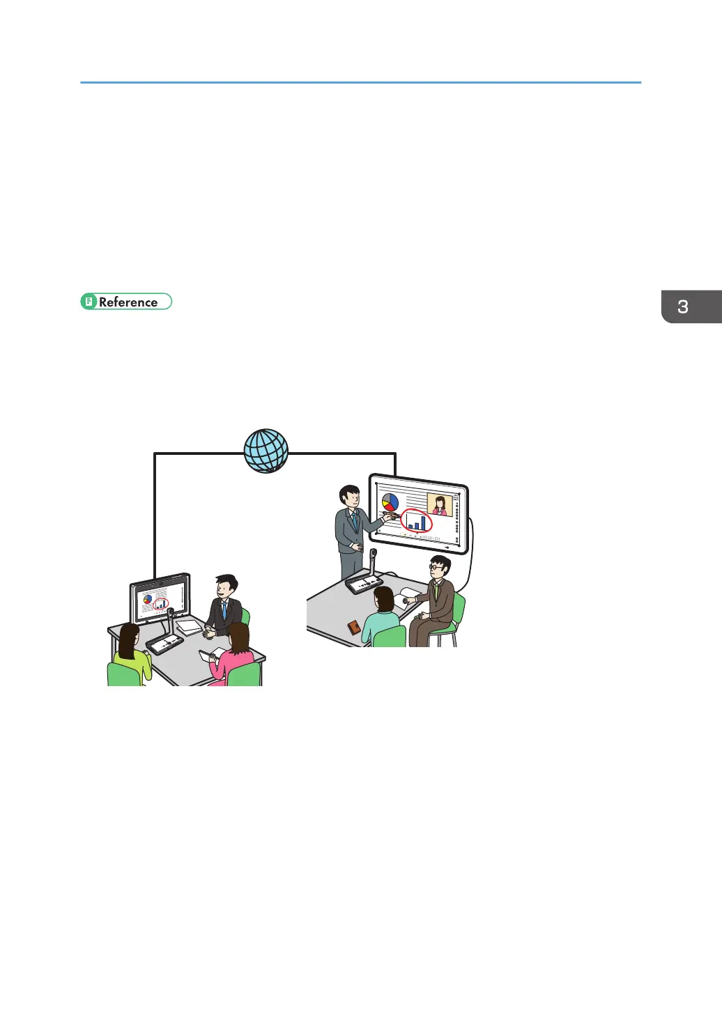• You can connect a video conferencing device to the machine and share the screen of the machine