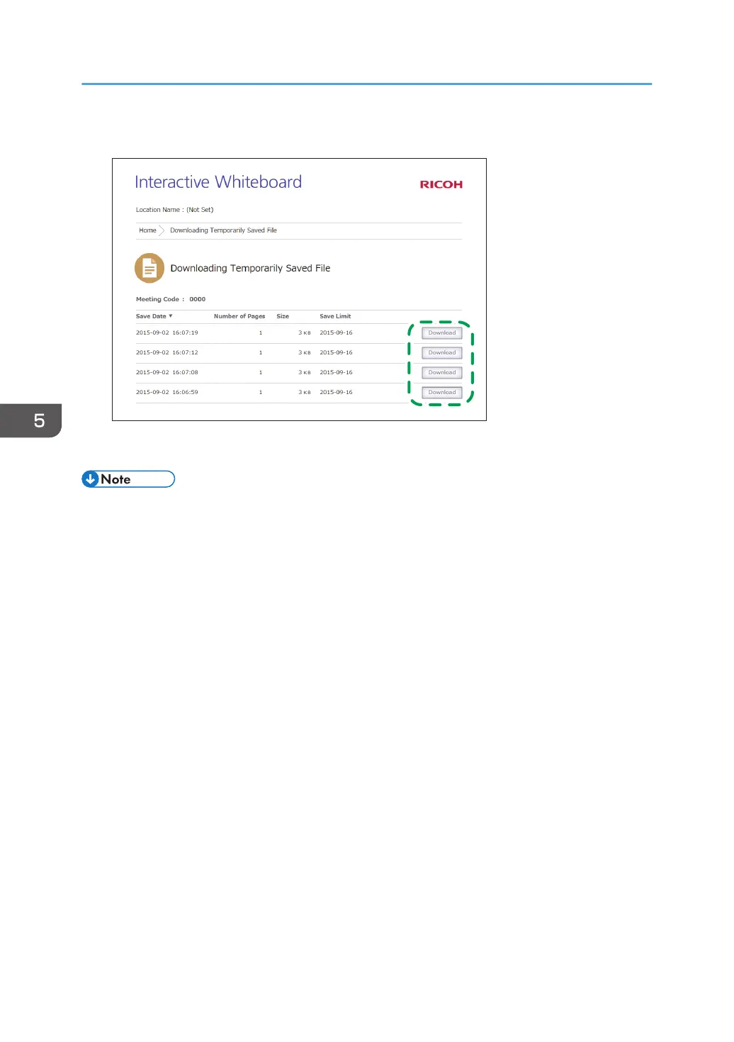 meeting code on the Web page screen for managing temporarily saved files. For details about