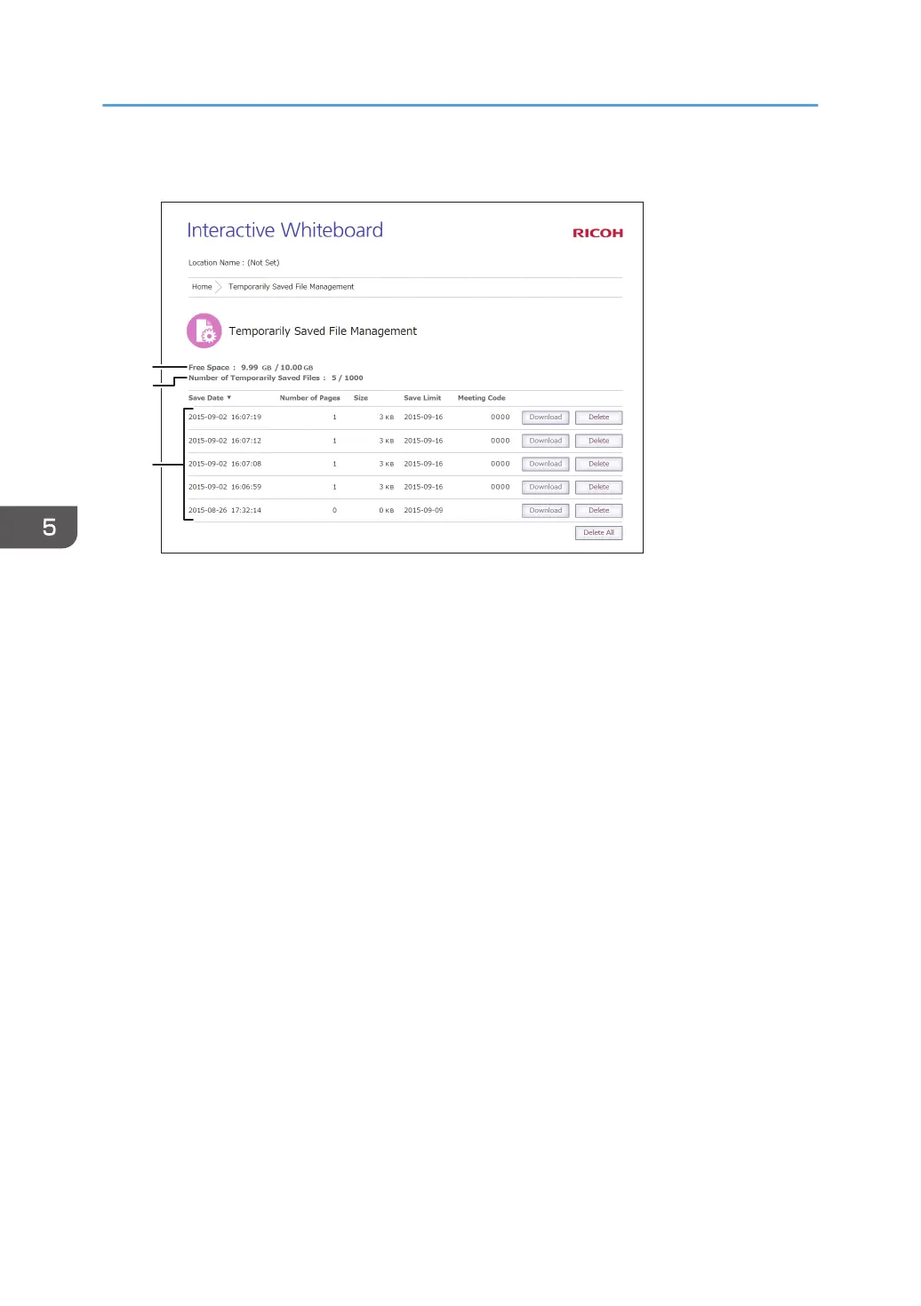 Viewing the Temporarily Saved File Management screen