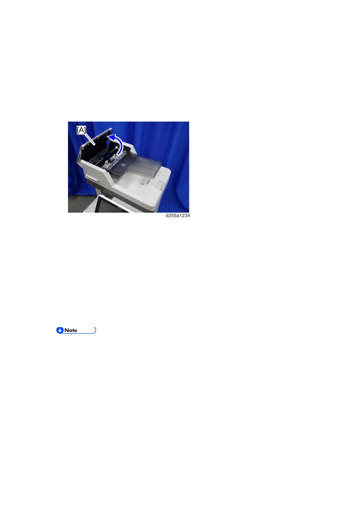 Open the ARDF upper cover [A] and remove the originals. Then place the originals into