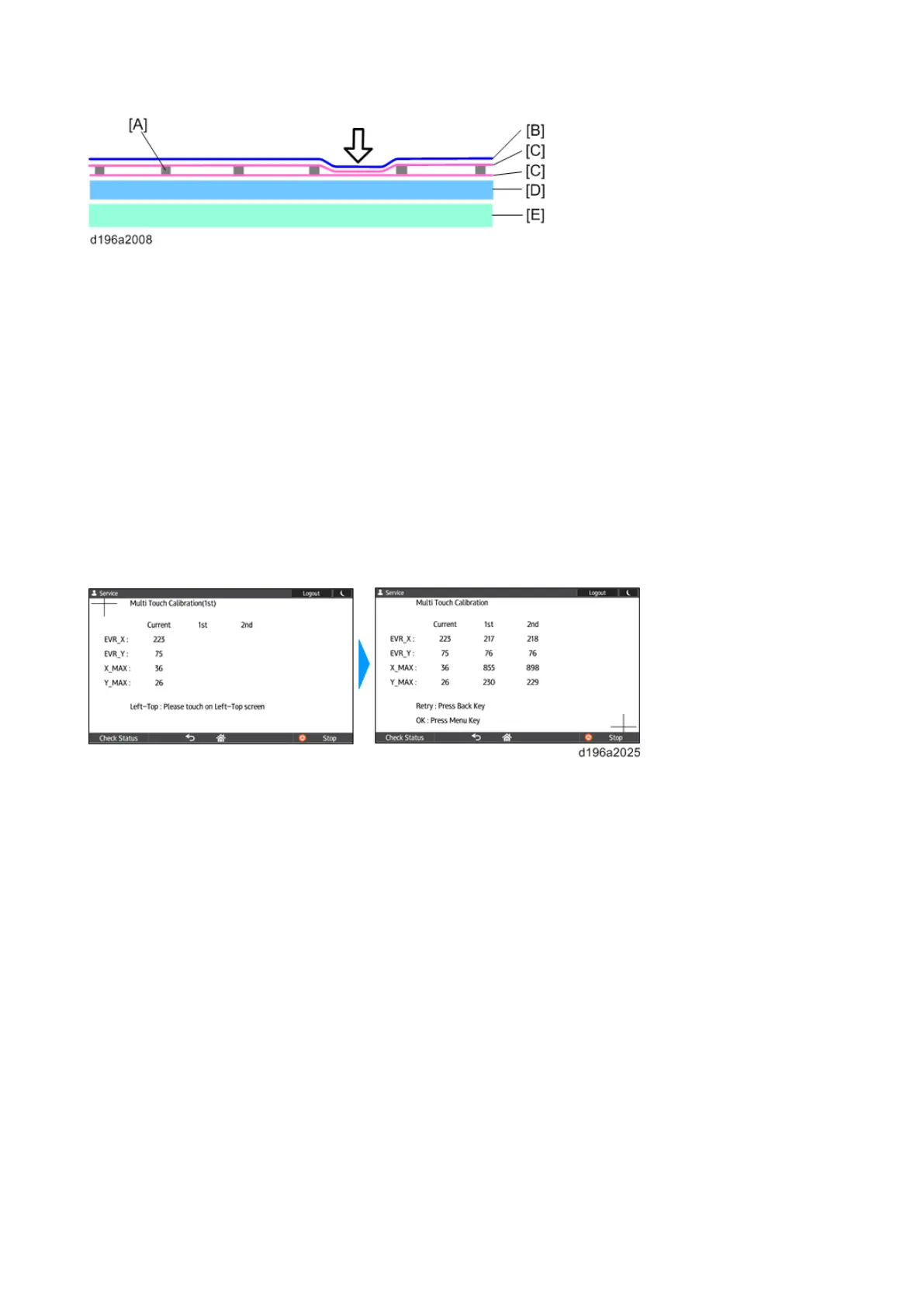 With the Multi-touch calibration in the self-check function, the touch panel is automatically calibrated using the