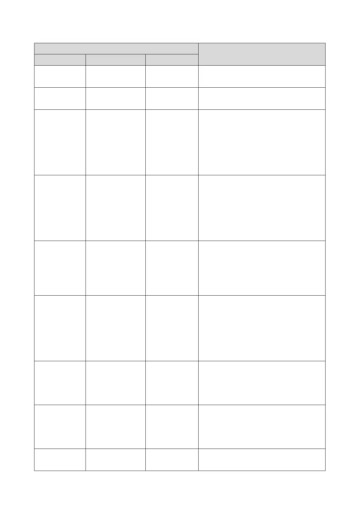 Menu level Description