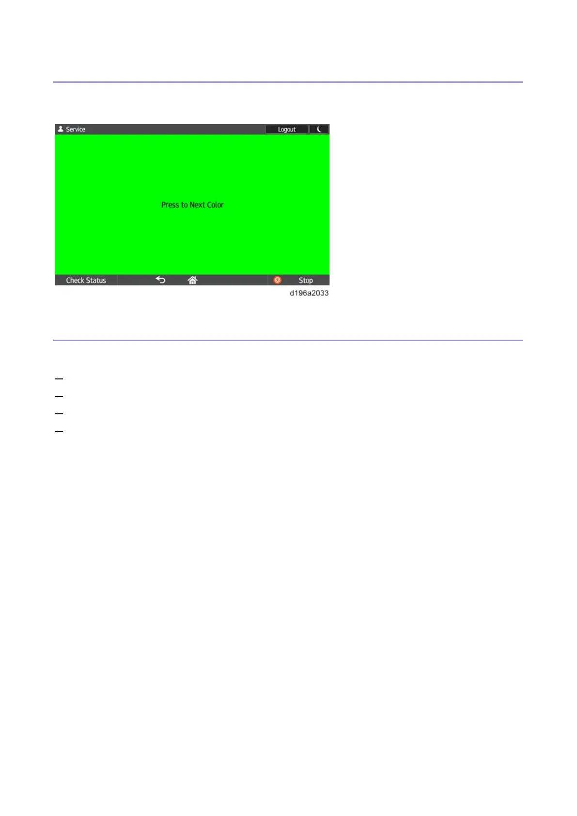 The check is completed when all colors have been displayed. The screen returns to the top menu of [Self Check].
