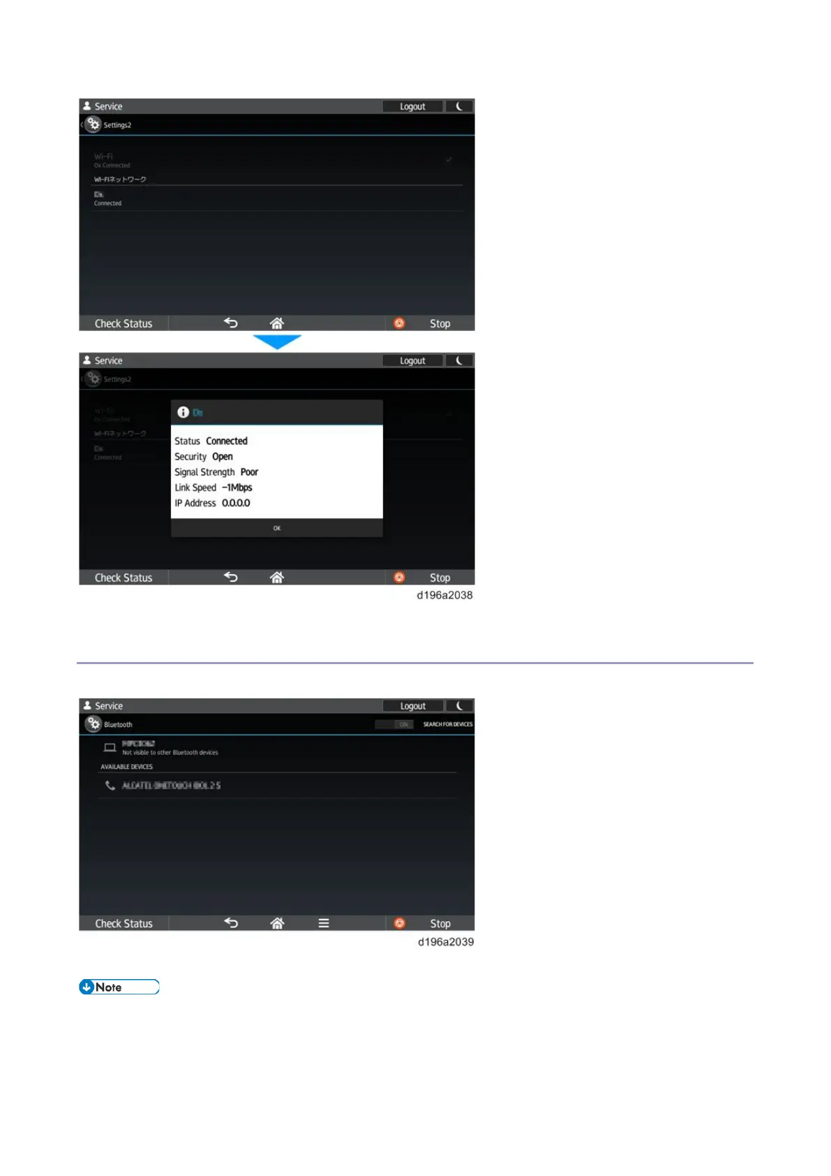 • You cannot switch Bluetooth to [ON] or [OFF] from the [Self Check] menu. Before checking the