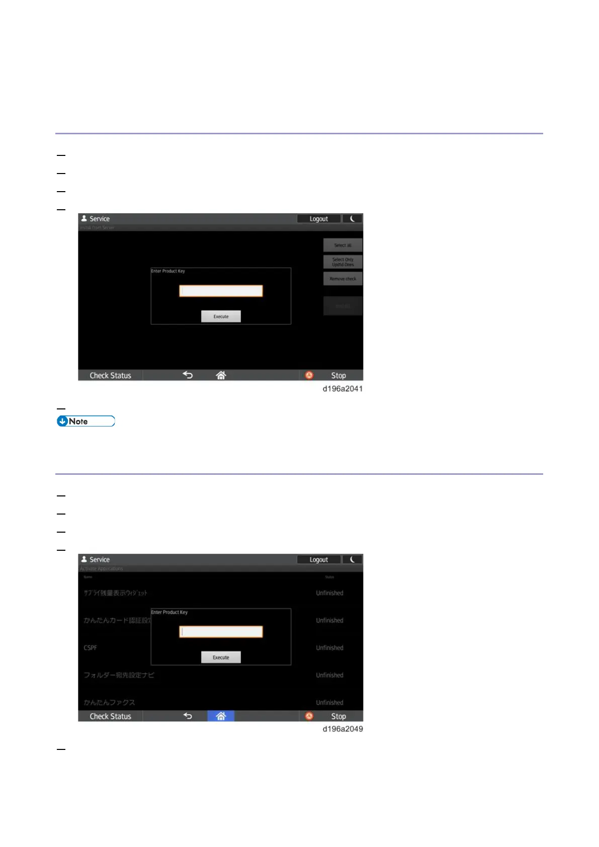 4. Select the application to be activated, and then enter the activation key and press [Execute].