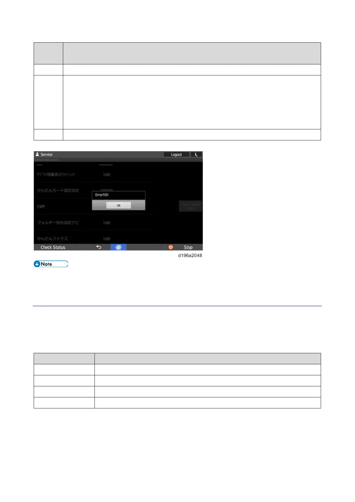 Example: The firmware version of the control panel is 1.02 and you attempted to install an