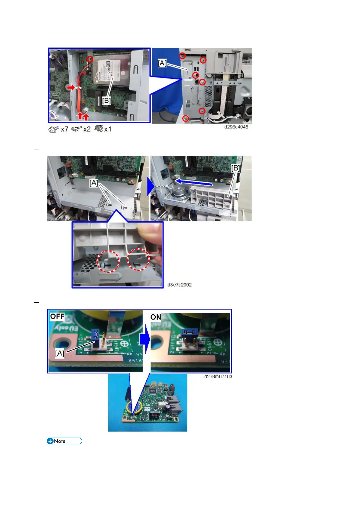 6. Attach the speaker bracket [B] while sliding the tabs into the cutouts [A] in the controller box. (hook x 2)