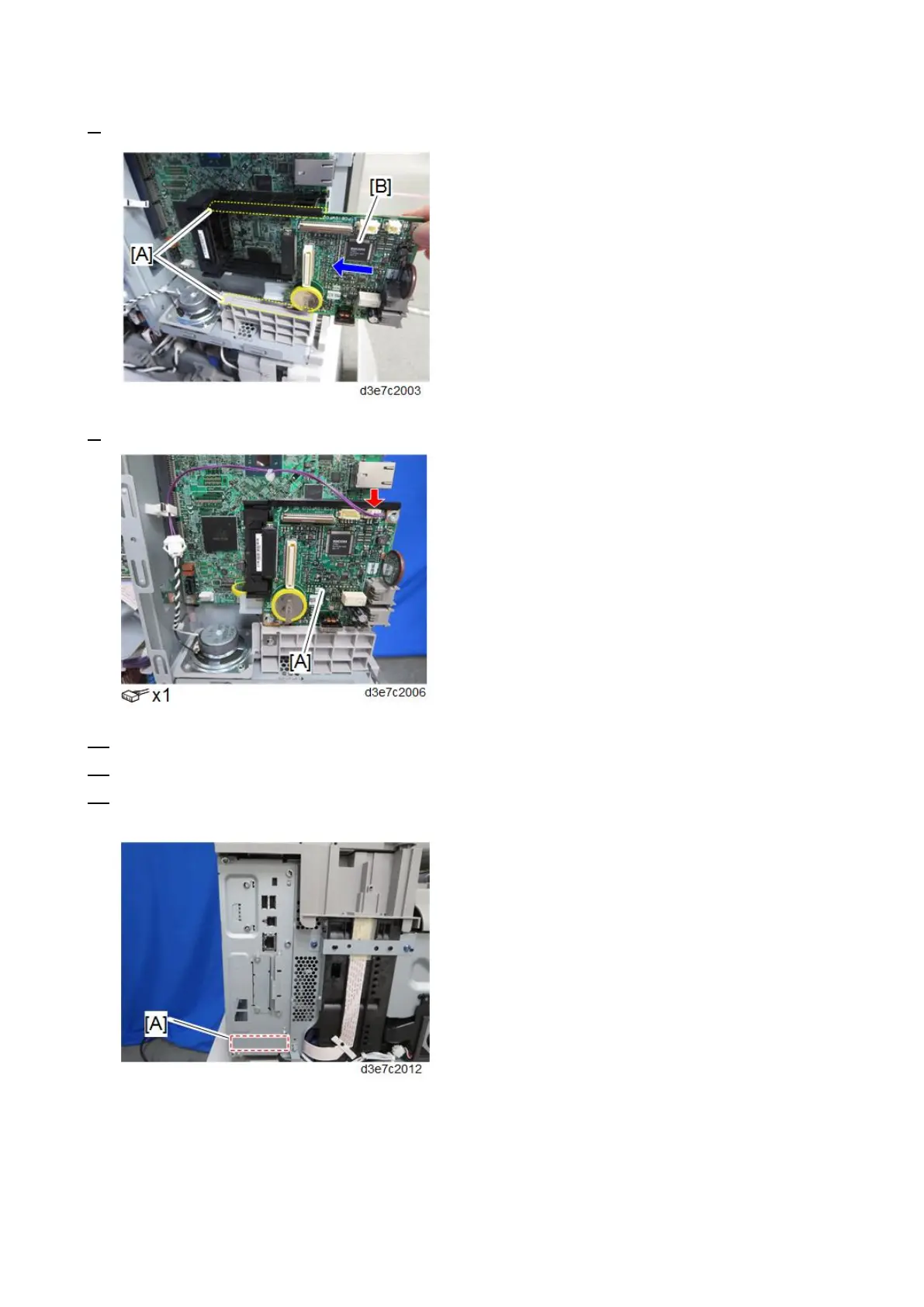 8. Slide the FCU [B] into the slot along the guide rails [A].