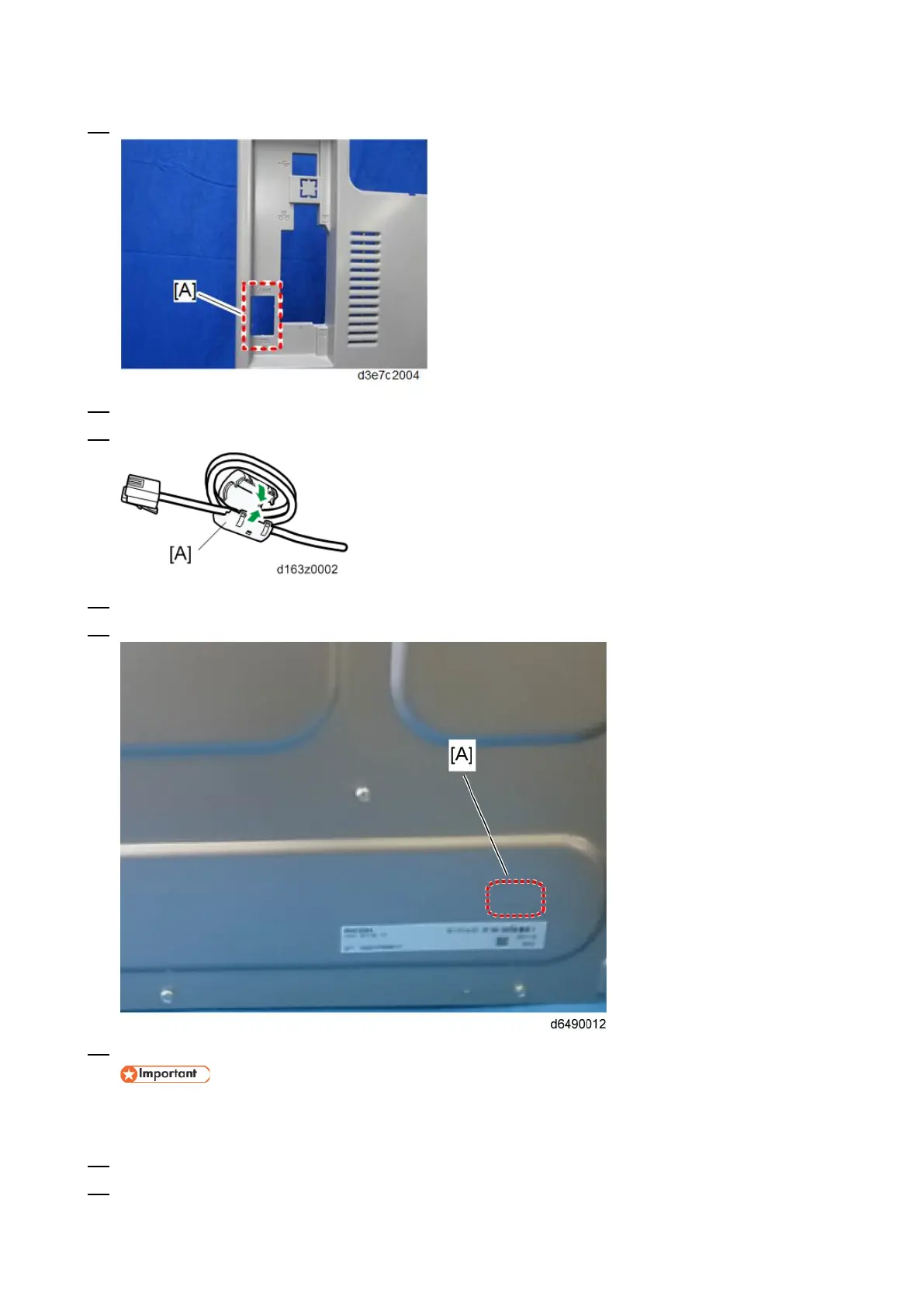 17. Attach the EMC Address Decal at [A] on the rear cover (EU only).