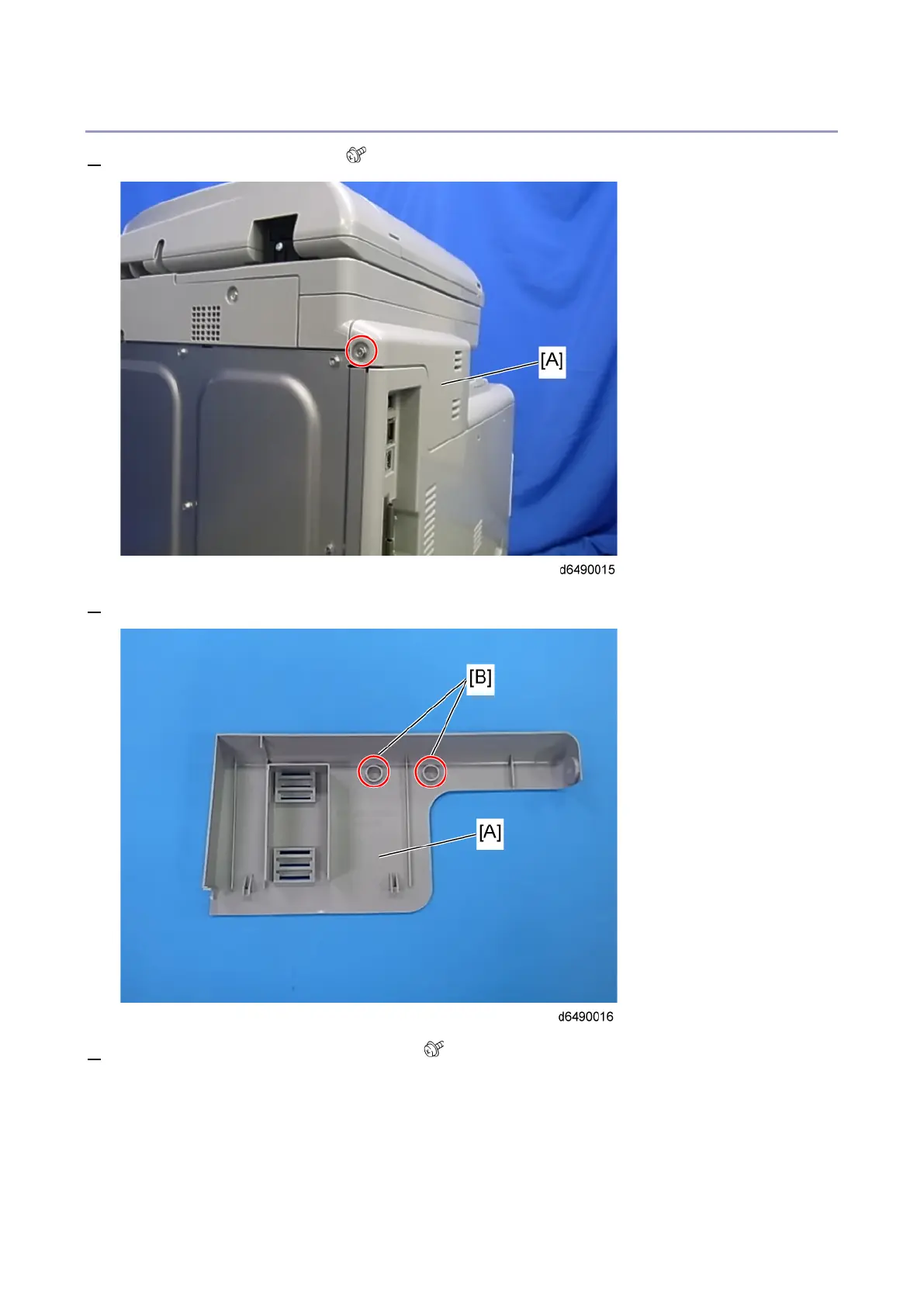 2. Cut out the parts [B] from the upper left cover [A] and make two screw holes to attach the bracket.