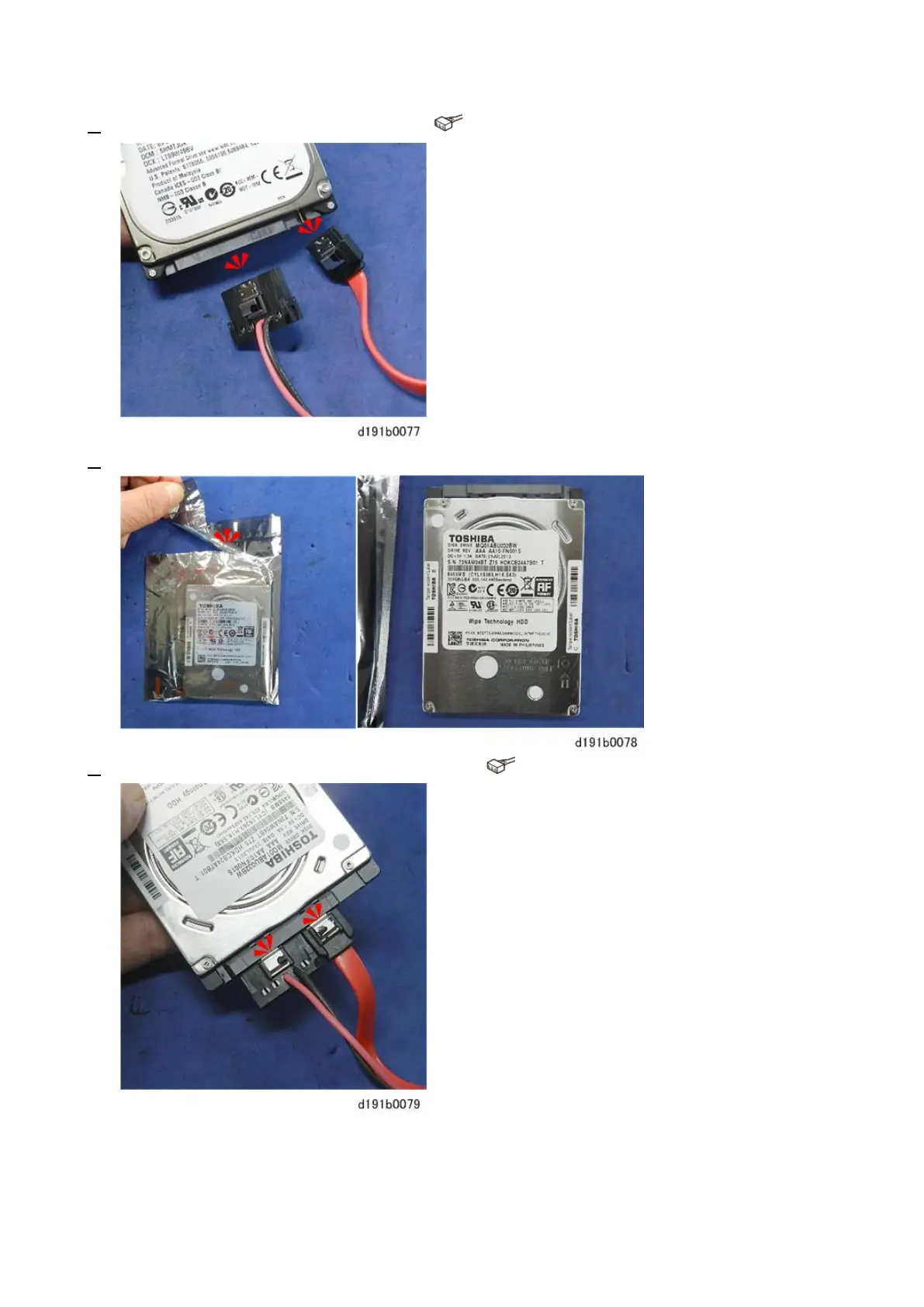 5. Connect the two cables to the enhanced security HDD. ( × 2)