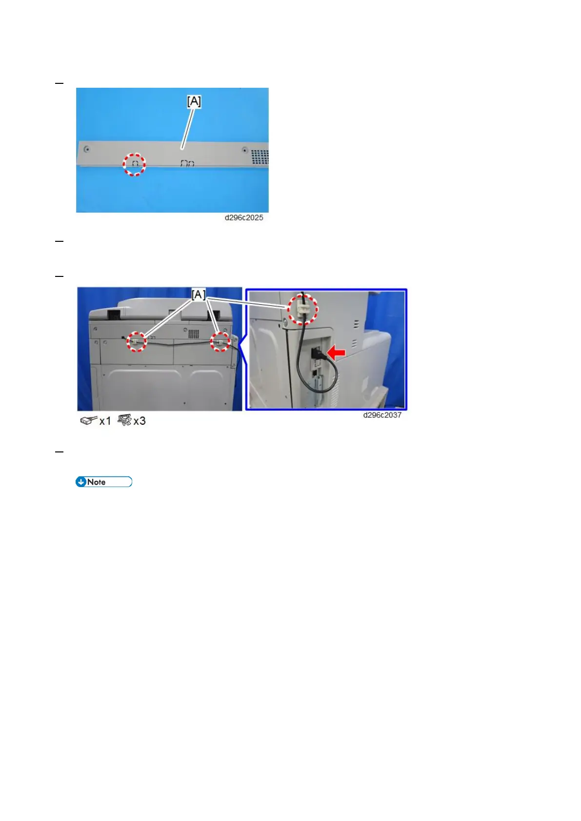 6. Attach the clamps [A] to prevent the cable from sagging.