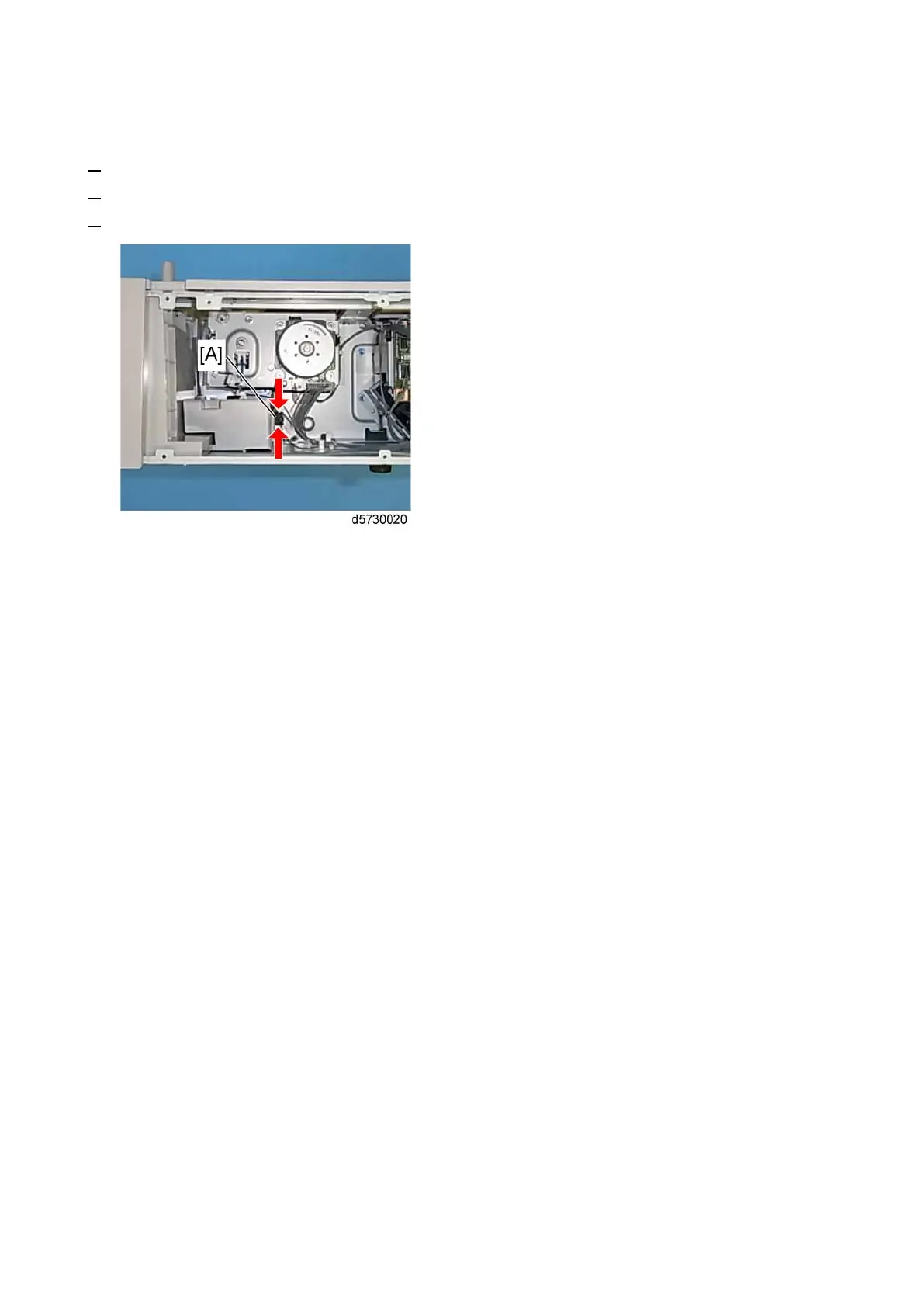 3. Pull out the tray set switch [A] from the front while releasing the hooks (Hooks × 2).