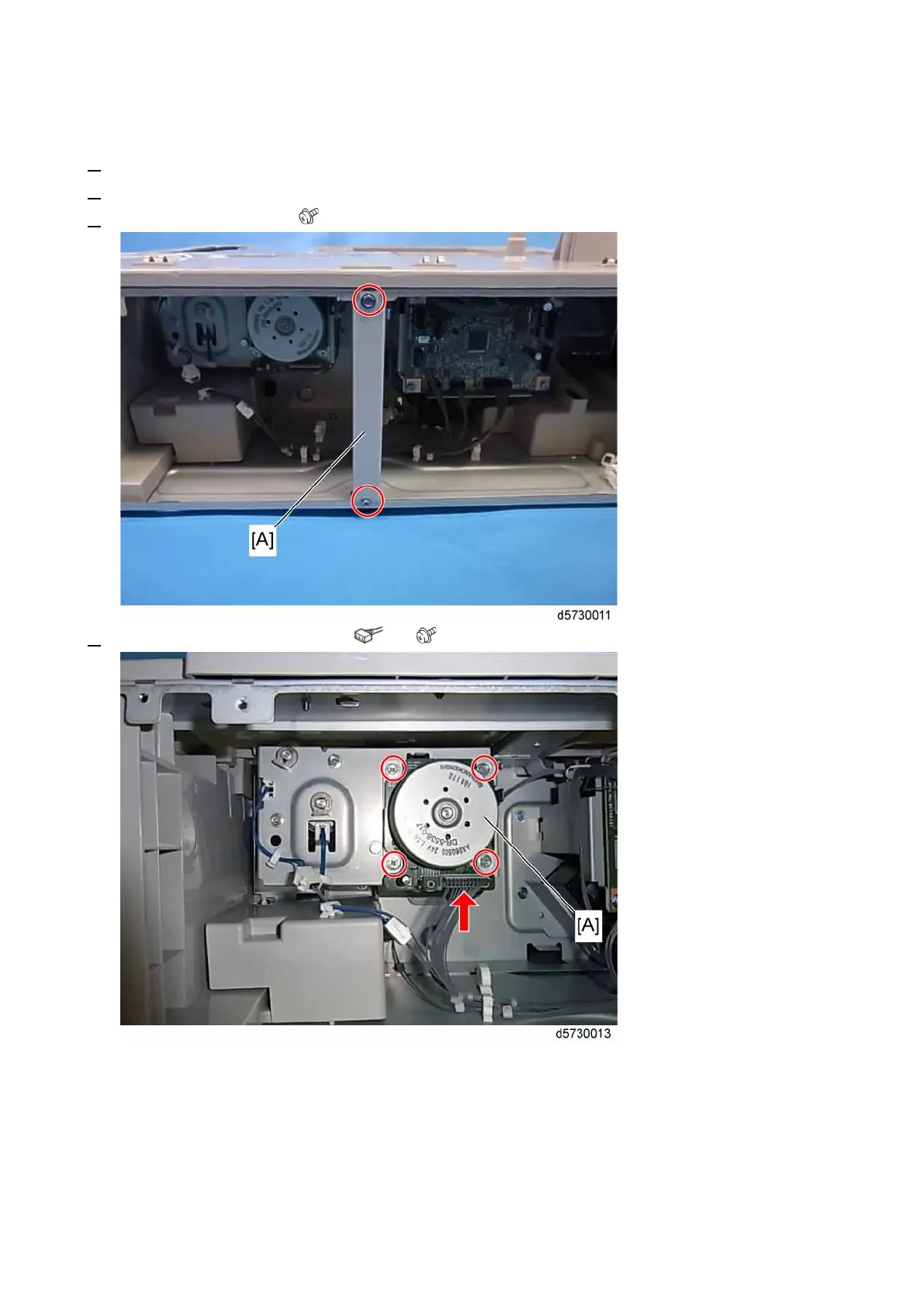 4. Remove the paper feed motor [A]. ( × 1, × 4)