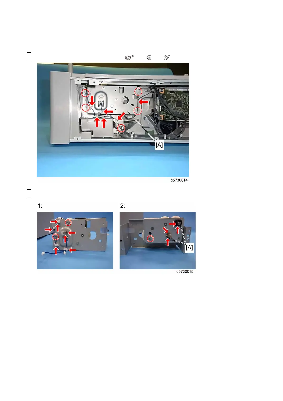 2. Remove the paper feed gear assembly [A]. ( × 2, × 4, × 4)