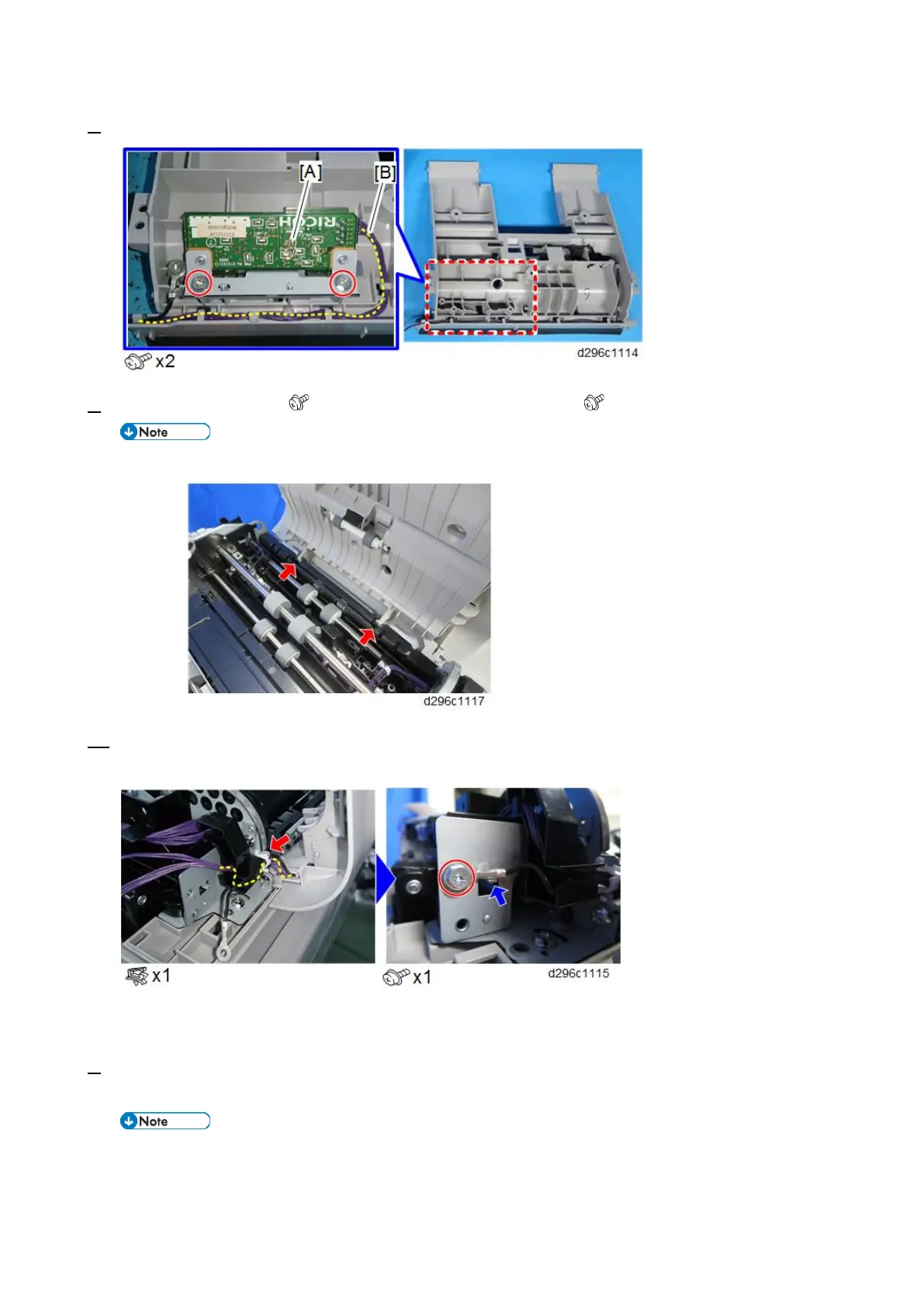 1. Connect the harness to the connector of the double-feed sensor (emitter) [A] and ADF relay board [B]